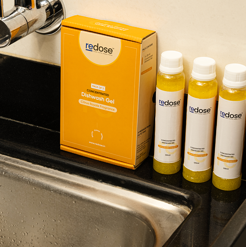 Redose Dishwash Gel Kit with refreshing Citrus Royale Fragrance is a powerful, grease-cutting solution that removes tough stains, oil, and food residue with ease. Just a few drops create rich foam, making it long-lasting and economical. Safe for all utensils and gentle on hands, it leaves dishes sparkling clean with a zesty citrus scent. Perfect for those searching for the best dishwash liquid, kitchen grease remover, or fragrant dish cleaner.