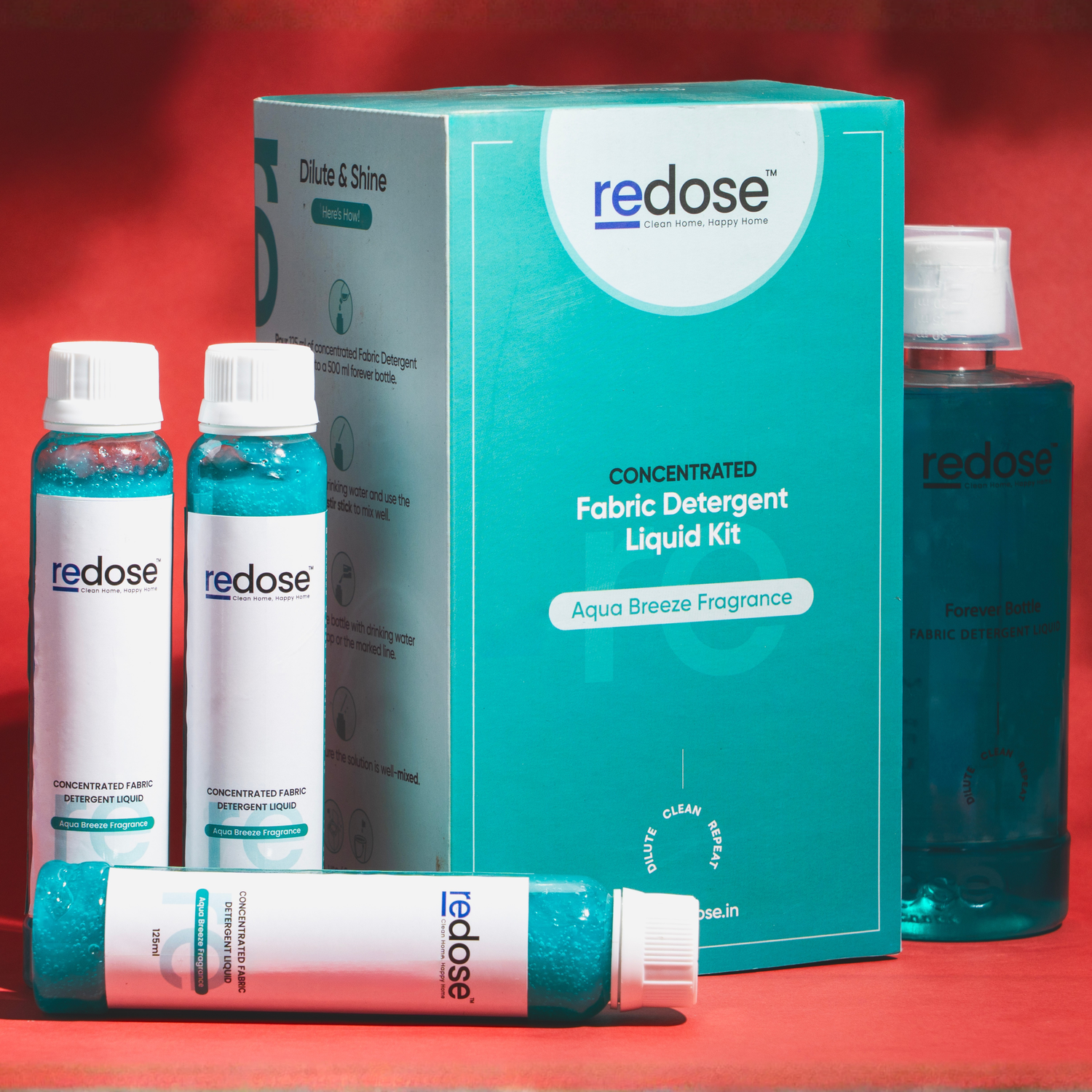 For a standard load, use 20–30 ml of Redose Fabric Detergent Liquid. Adjust quantity based on water hardness and load size for best results.