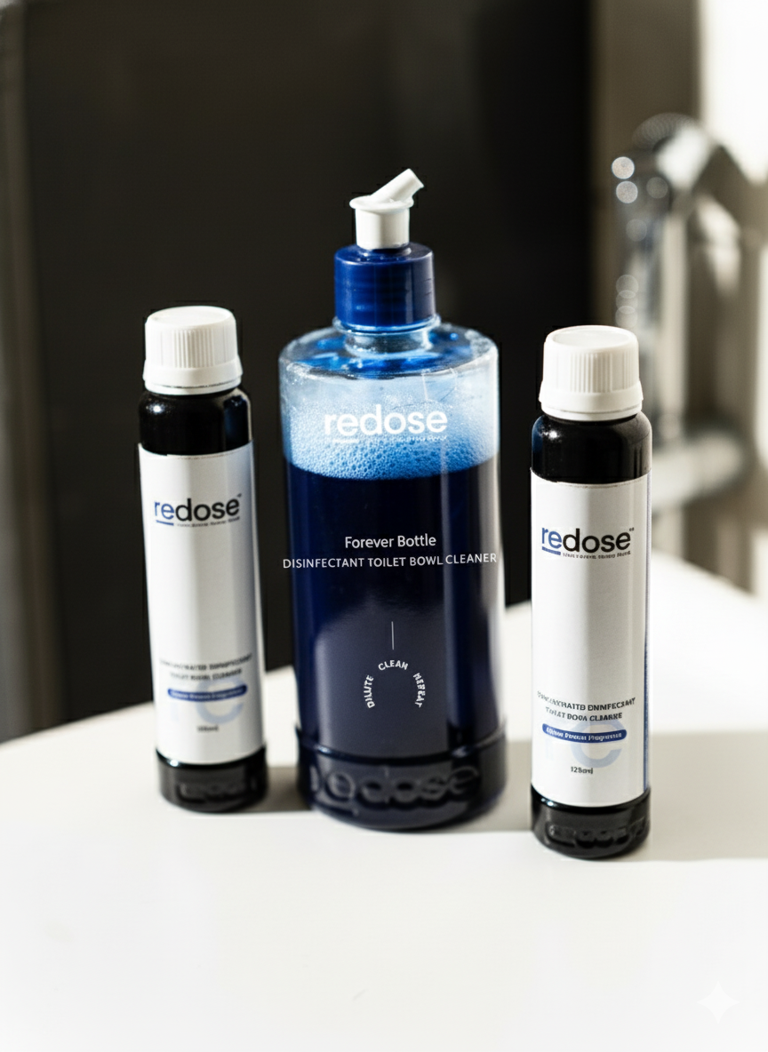 Why pay extra for water when you already have it at home for free? Redose introduces a revolutionary way to clean with its compact 125ml concentrated toilet bowl cleaner — simply dilute it with your own water to make up to 500ml of powerful cleaning solution. Perfect for daily toilet maintenance, it removes tough stains and keeps your toilet sparkling clean. This smart formula not only saves you money, but also reduces plastic waste and your carbon footprint. Affordable, effective, and refreshing with an Ocean Breeze fragrance.